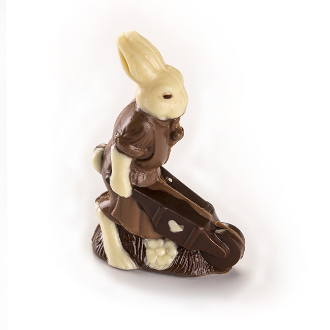 Beautiful bunny made with premium dark, white and milk chocolate.